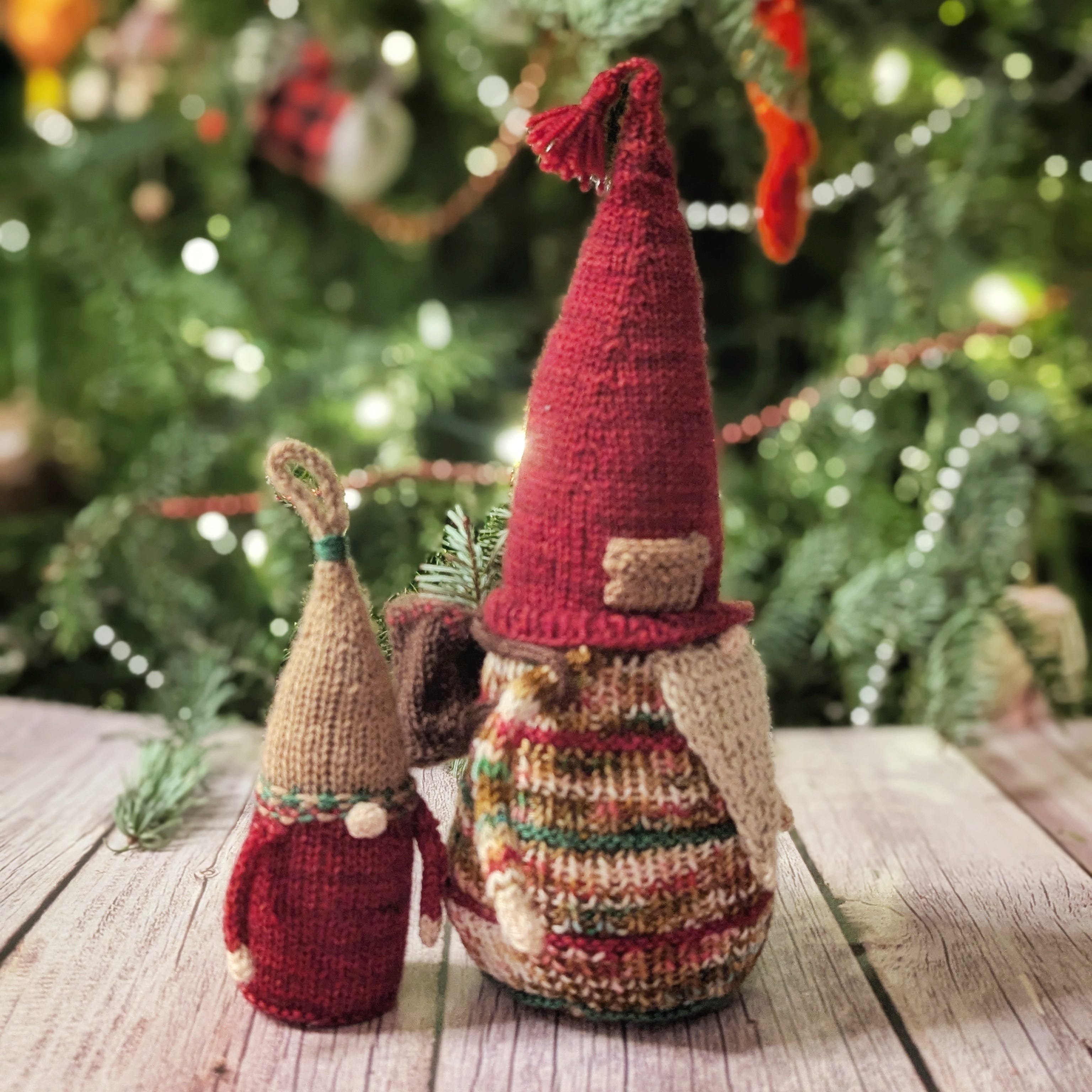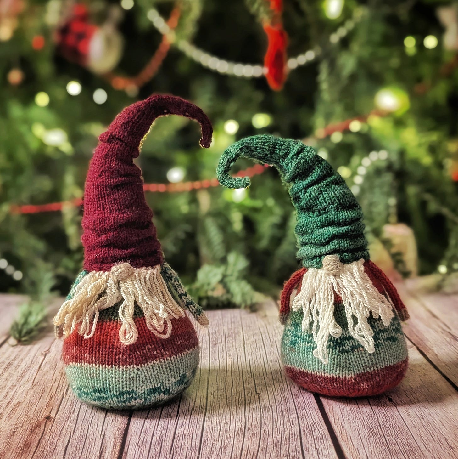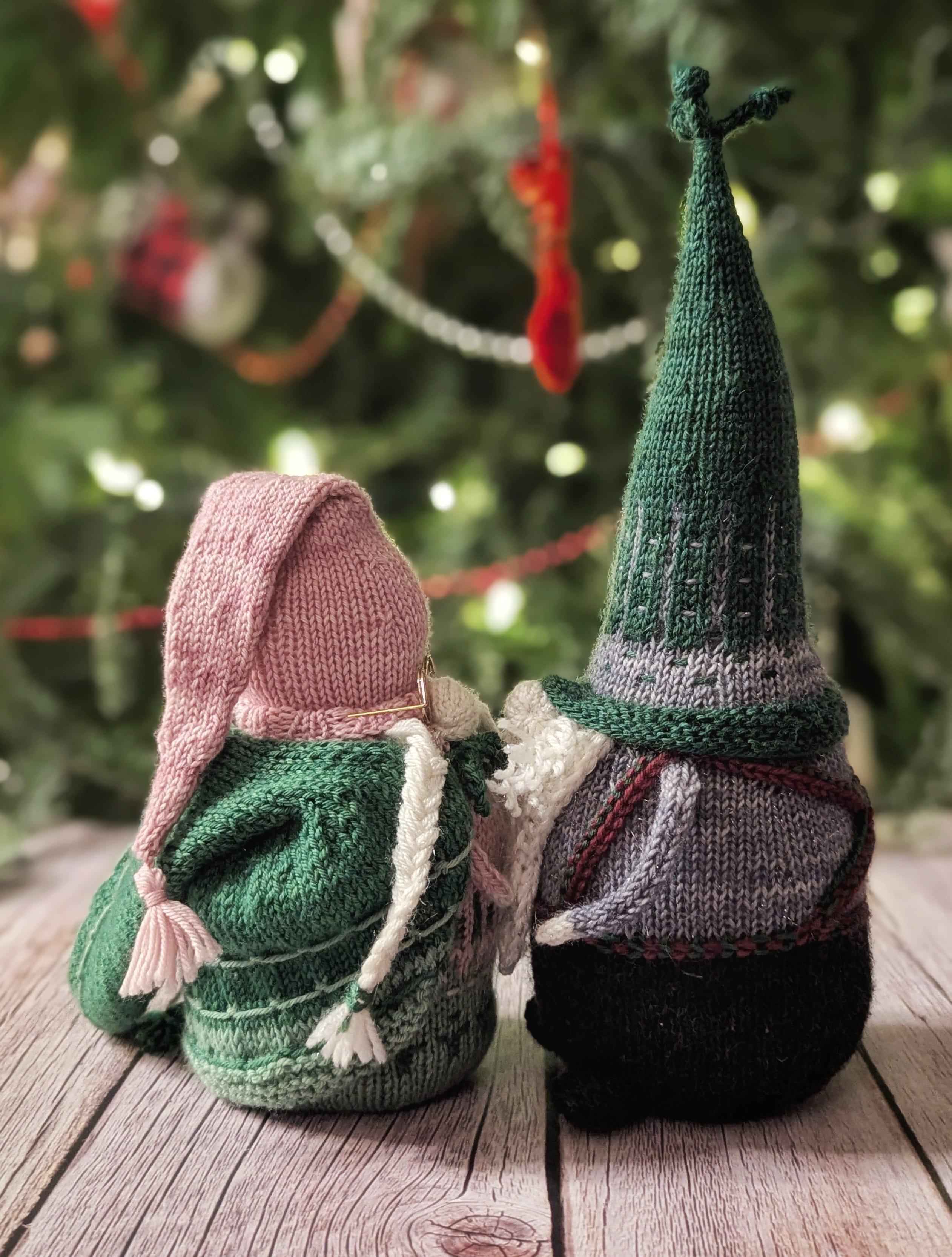 I love, love, love Christmas, Advent, and all of the associated glitter. So when I started knitting gnomes, I knew that they would become a part of our Christmas decorations, and I was right. Right away in 2020 I made these two lovelies, Gnick and Gnoelle (GN7 & GN8)